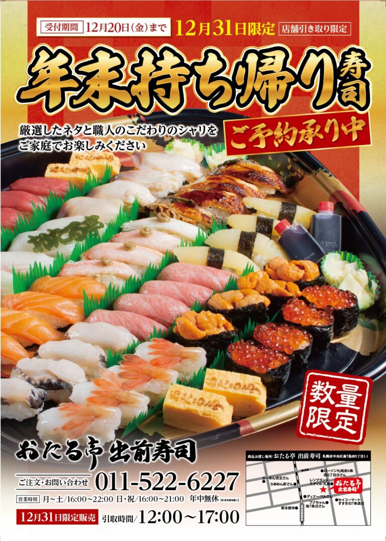 ご覧いただきありがとうございます。 出前寿司のグランドメニューが新しくなりました!熟練の職人が握る本 […] -