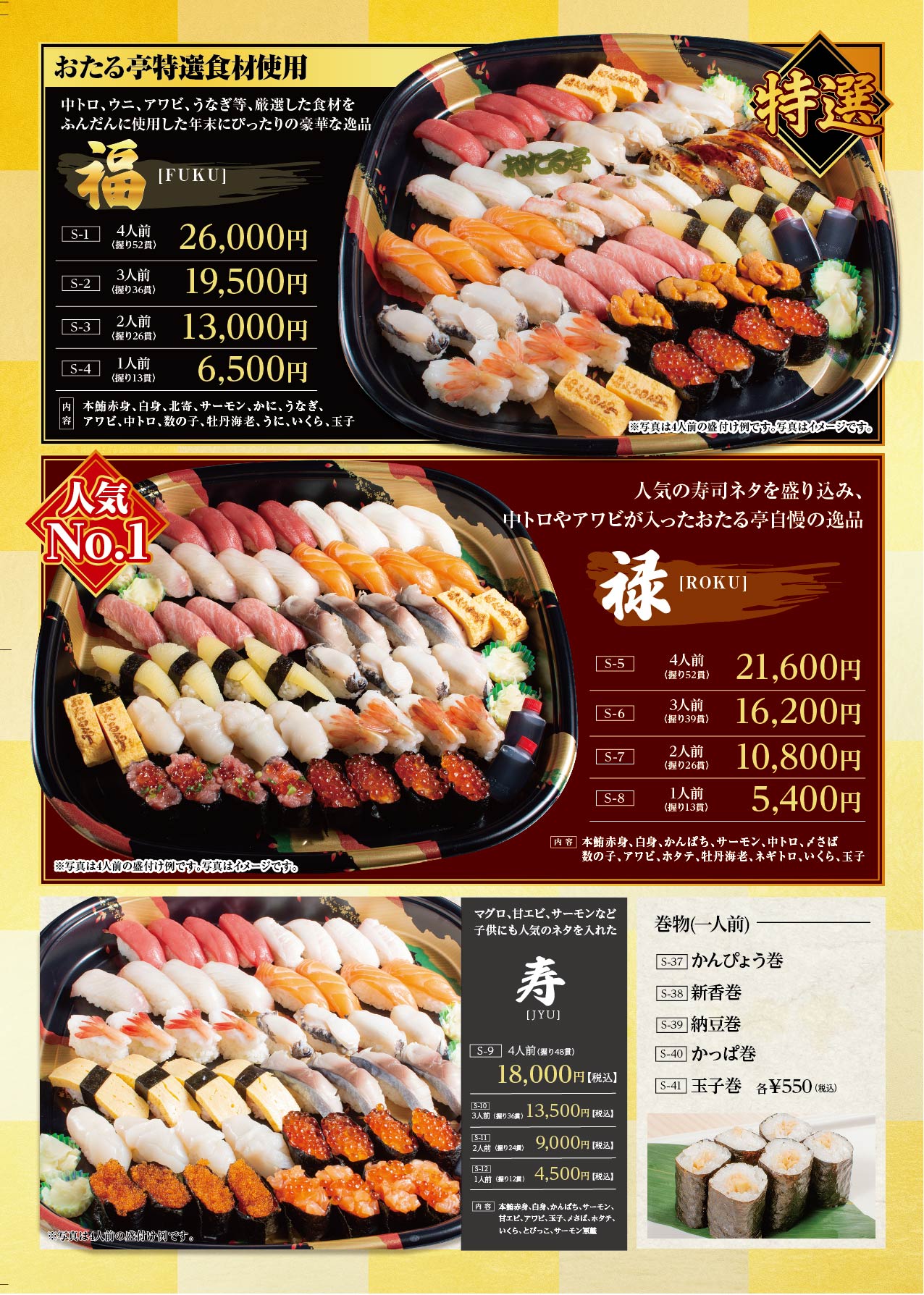 人気の寿司ネタを盛り込み、中トロやアワビが入ったおたる亭自慢の逸品